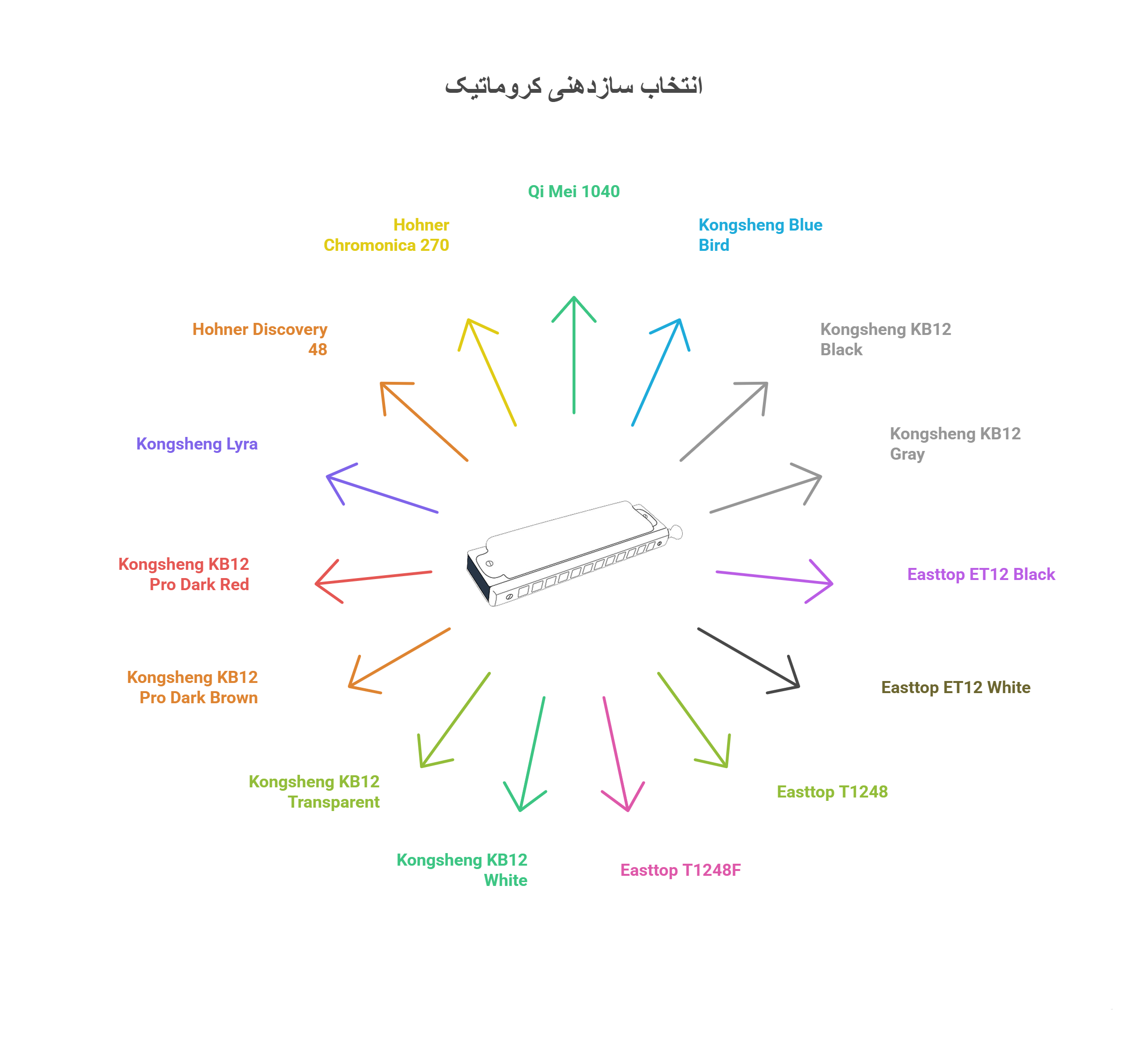 در این لیست، شما میتوانید بر اساس سطح نوازندگی، سلیقه ظاهری، نوع کوک، جنس بدنه و بودجه، یکی از مدل های معرفی شده را انتخاب کنید. از مدلهای اقتصادی برای شروع گرفته تا گزینه های حرفه ای برای اجرا و ضبط، همگی در دسترس شما هستند. پیشنهاد می کنیم پیش از خرید، به صدای نمونه هر مدل در سایت نواکده گوش دهید و مشخصات فنی هر محصول را با دقت بررسی کنید. انتخاب سازدهنی مناسب میتواند لذت یادگیری موسیقی را چند برابر کند.