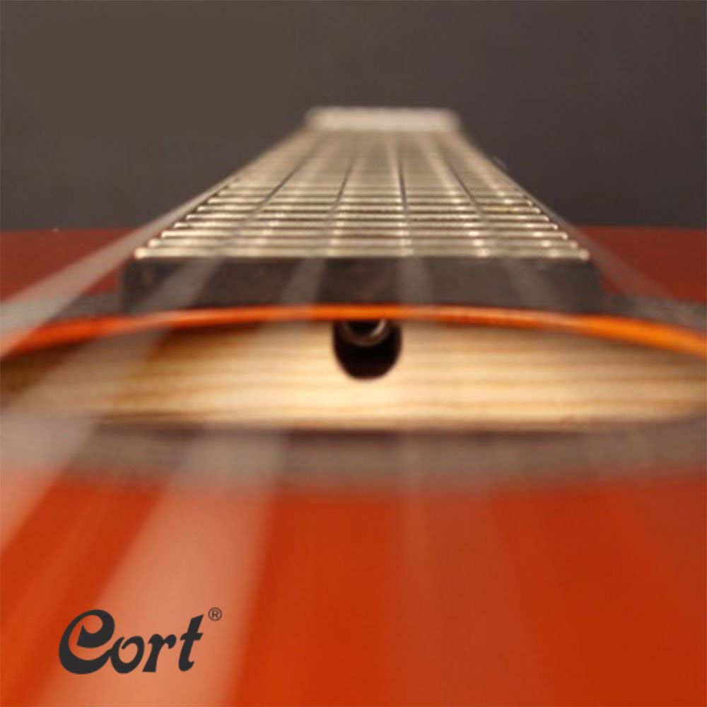 - پروفایل دسته: در مدلهای کلاسیک Cort، دسته معمولاً با ضخامت و عرض استاندارد کلاسیک (اغلب حدود (52 \text{ mm}) در سِمت بالا) طراحی شده است، اما شکل پشت آن (Profile) اغلب کمی باریکتر از مدلهای بسیار سنتی است تا دست نوازندگان امروزی و کسانی که از گیتار فلامنکو یا فولادی آمدهاند، راحتتر باشد.