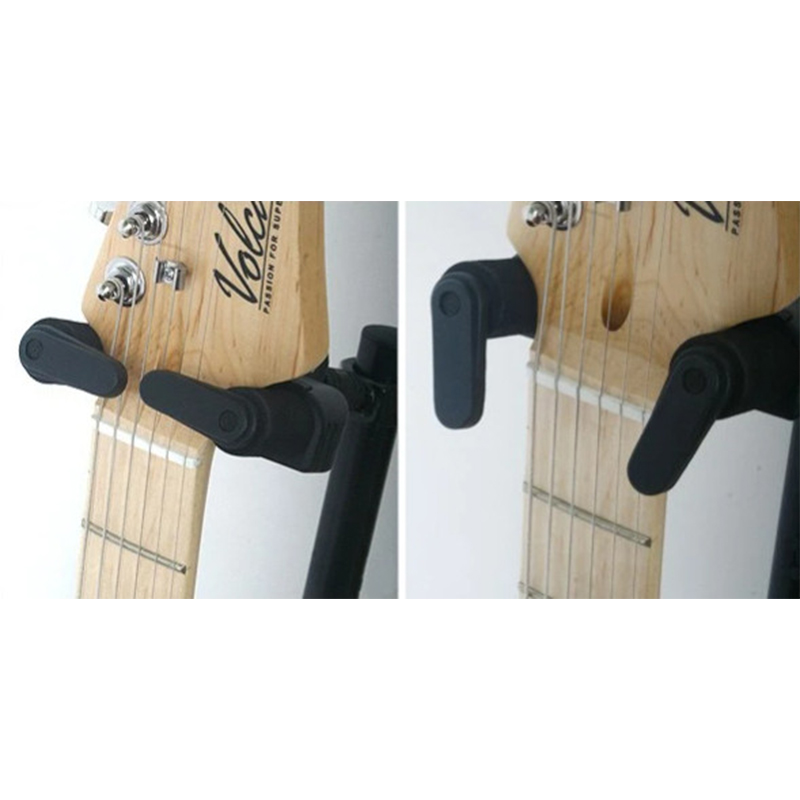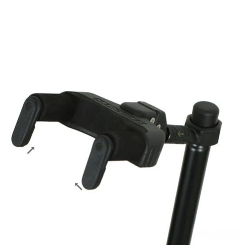 مدل GS415B Plus با ترکیب هوشمند مواد سبک و مقاوم، تمرکز ویژه ای بر ایمنی ساز دارد. پایه های سه گانه با چرخش زاویه ای محاسبه شده وزن گیتار را به صورت یکنواخت پخش می کنند، و لایه های فوم مشکی در نقاط تماس، از آسیب رنگ یا لَک ساز جلوگیری می نماید.