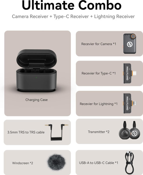شامل گیرنده های مخصوص برای موبایل (USB-C، Lightning) و دوربین (3.5mm TRS) – فقط وصل کنید و شروع کنید. -