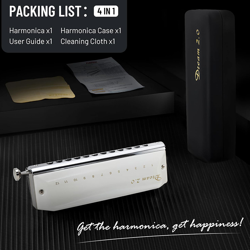 سازدهنی کروماتیک ایستاپ مدل دریم 2.0 سفید دارای هاردکیس و دستمال مخصوص نظافت است. از طرفی به همراه این سازدهنی لوازم یدکی نیز وجود دارد که باعث میشود شما مدت بسیار طولانی با خیال راحت از آن استفاده کنید و نگران لوازم مصرفی آن نباشید. لوازم یدکی که در بسته بندی این سازدهنی وجود دارد شامل: یک عدد فنر اسلاید، چند عدد بافر، چند عدد ویندسیور، چند عدد پیچ.