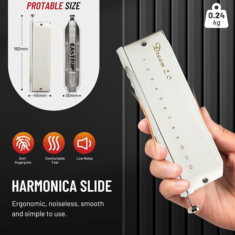 نسخه به روزشده از مدل محبوب T1248 با ۱۲ سوراخ و ۴۸ قمیش، مناسب برای شروع یادگیری و آموزش. این سازدهنی کروماتیک دارای 12 حفره گرد میباشد که به کمک آن وسعت صدایی به اندازه 3 اکتاو صدا را در اختیار خواهید داشت. به کمک این 3 اکتاو صدا میتوانید هر قطعه ای را در سبک های کلاسیک، پاپ و حتی در سبک سنتی ایرانی اجرا کنید.