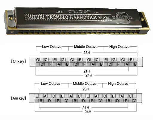فرکانس سوراخ های ردیف بالا از فرکانس سوراخهای پایین قدری پایینتر بوده و صدای زیرتری دارند. کوک سازدهنی ترمولو مبتنی بر گام دیاتونیک میباشد اما تفاوتهای قابل ملاحظهای بین این دو ساز دیده میشود. و البته سازدهنی ترمولو معمولا در هر اکتاو نت های مربوط به گام ماژور دیاتونیک (Major Diatonic Scale) را دارد و از این رو بسیار مناسب نواختن آهنگهای سبک Folk می باشد.